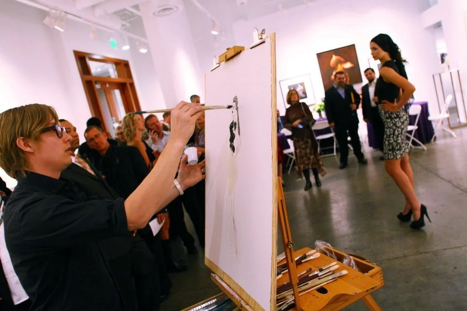 The resulting artworks can for example be inspired by event guests, models, products, and scenes. The works may include branded content and specific elements as agreed with the client and applied for commercial use as well as exclusive giveaways as originals, prints, or digital images. In addition the works may be displayed in the client’s space as decorative art while commemorating special moments and the subjects which inspired them.